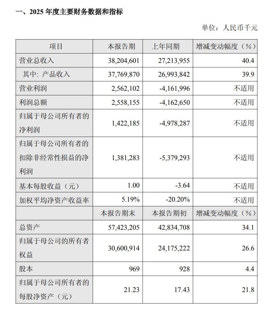 百济神州2月26日发布2025年度业绩快报,报告期内实现营业总收入382.05亿元,同比增长40.40%;归属于上市公司股东的净利润14.22亿元,上年同期净利润亏损49.78亿元;基本每股收益1元。