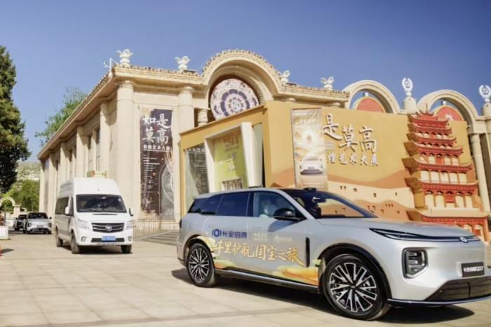 7件(组)文物在长安启源Q07车队的护航下,从敦煌博物馆穿越2210公里,抵达北京展览馆。