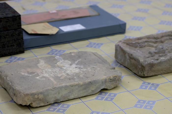 图为国家二级文物唐彩绘双人双马模印砖。据了解,展览预计展出至2028年,出于文物保护的考量,期间会有几次文物更换。